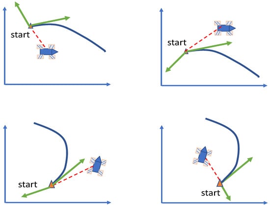 In most robot application scenarios, the tracking trajectory is determined. In some cases, the starting point of tracking may be unreasonable, as shown in Figure 5. The figure shows that the starting point of the trajectory lags behind the robot. In this case, the starting point of the trajectory should not be used as the starting point of the tracking. A more reasonable way is to enter into the trajectory at other points on the trajectory.