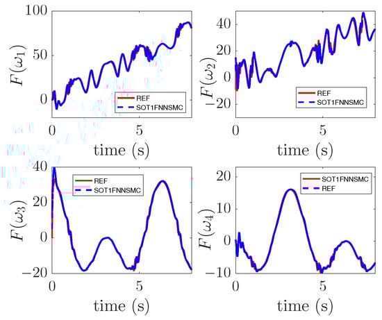To verify the tracking performance of the designed control method, the trajectory tracking simulation of FM-OMR is carried out. The parameters of FM-OMR are shown in Table 3. In this paper, four SOT1FNNA are used to approximate the uncertain functions .