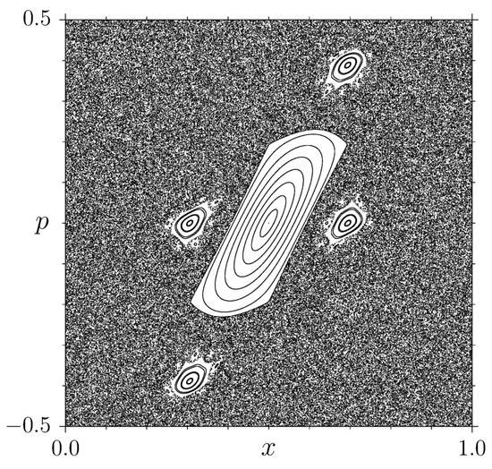 - Chirikov, B.V.; Shepelyansky, D.L. Chirikov standard map. Scholarpedia 2008, 3, 3550. [Google Scholar] [CrossRef]
