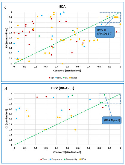 - To explore correlations within ‘families’ of measures, and between individual measures when applied to different data types (RRi, respiration and EDA).