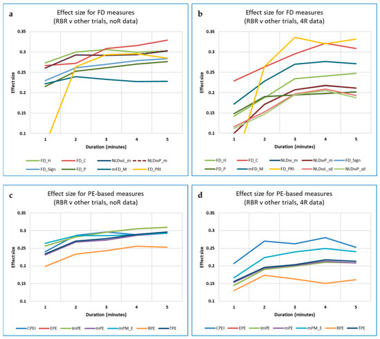 Although in theory approximately 1 min of data are needed to assess the HF components of HRV, and approximately 2 min for the LF component, it is generally accepted that for accurate estimation of short-term HRV, five minutes of data are required, and that frequency-domain measures should be preferred to time-domain measures [74]. We followed these guidelines here. For some time-domain measures, however, such as SDNN and RMSSD, even 10 s of data may be useful [75].