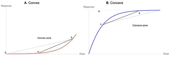 A-There is a zone in which is convex, that is, , with the implication that a policy of variation of dosage produces beneficial effects:
