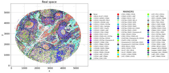 - Zhang, W.; Li, I.; Reticker-Flynn, N.E.; Good, Z.; Chang, S.; Samusik, N.; Saumyaa, S.; Li, Y.; Zhou, X.; Liang, R.; et al. Identification of cell types in multiplexed in situ images by combining protein expression and spatial information using CELESTA. Nat. Methods 2022, 19, 759–769. [Google Scholar] [CrossRef]