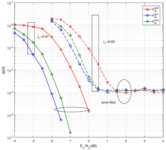 Therefore, it can be concluded that the introduction of the general linking matrix plays an important role in the water-fall region, but it has limited effect on the error-floor region.