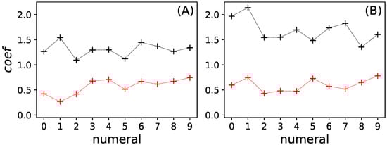 An artificial neural network can be viewed as an information-theoretic channel [] that relays the information received at the input layer to the output layer while performing some computations along the way. To measure the throughput of information, define the random variable with ten states (one for each numeral) and Shannon entropy , while the outputs form a random variable with entropy . The mutual information between both (see Equation (1)) consequently measures how much the output symbol distribution is determined by the inputs (and vice versa, as this is an un-directed measurement):