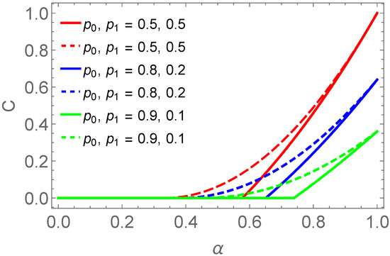 where is the density operator of biqubit system described in Equation (1), identity matrix and parameter called visibility of system . If we take , the Equation (22) becomes an isotropic state [41] with maximally entangled . The isotropic states are invariant under all transformations of the form , where the asterisk denotes complex conjugation in a certain basis.