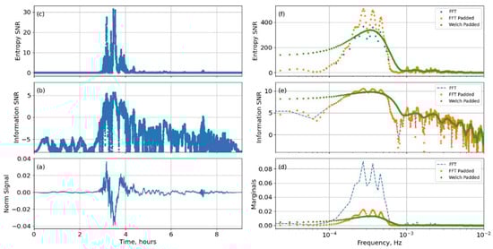 Section 3, Algorithm Evaluation and Results, expands the spectral information methods and applies them to Tonga Lamb wave signatures representative of energetic broadband transients. Selected spectral information and entropy representations illustrate some of the different types of information that can be embedded in a signal’s energy signature. However, this is not a geophysics paper; it is an invitation to change perspective from physical to entropy metrics for pattern recognition and ML applications, where normalization, linear, and nonlinear transformations are inevitable, and stable, reproducible, and explainable methods are preferable.