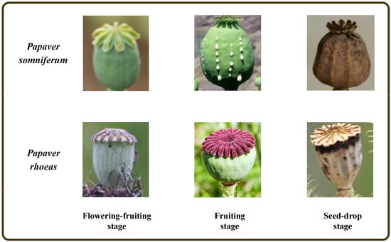 - Choe, S.; Kim, S.; Lee, C.; Yang, W.; Park, Y.; Choi, H.; Chung, H.; Lee, D.; Hwang, B.Y. Species identification of Papaver by metabolite profiling. Forensic Sci. Int. 2011, 211, 51–60. [Google Scholar] [CrossRef] [PubMed]