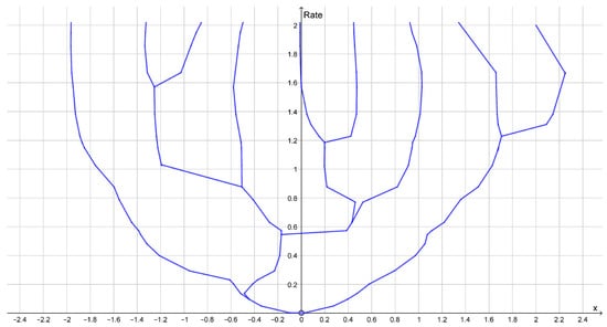 Dendrogram illustrating bifurcation of the reconstruction points for a sample of 100 points samples from a standard Gaussian distribution.