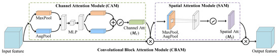Precisely, we deployed the Convolutional Block Attention Module (CBAM) [42] attention mechanism module. CBAM was chosen because it includes not only channel attention but also spatial attention to further enhance valuable features in the feature map and suppresses unnecessary features.
