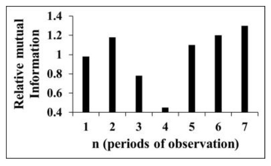 Relative mutual information values. Numbers in abscissa correspond to periods of observation [54].
