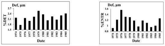 RQA analysis of deformation %DET and Boltzmann entropy (BE) for the initial period 1974–1985.