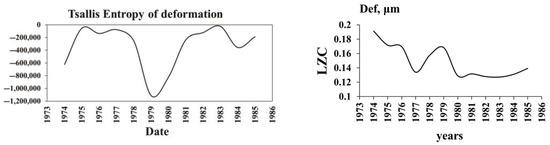 Tsallis entropy and Lempel–Ziv complexity of deformation for the initial period 1974–1985.