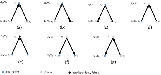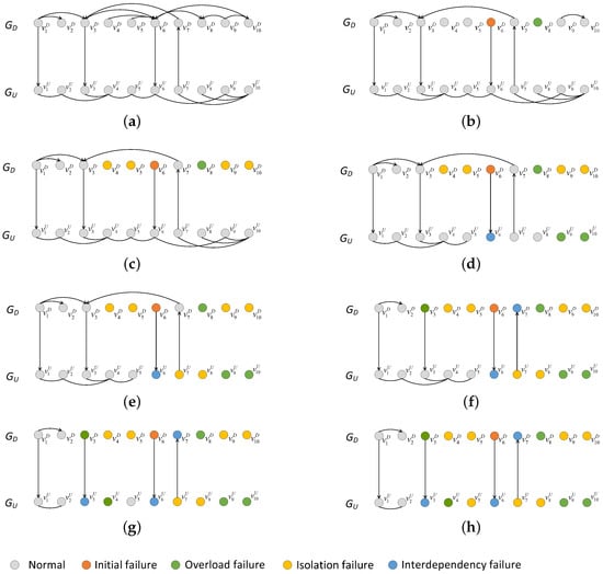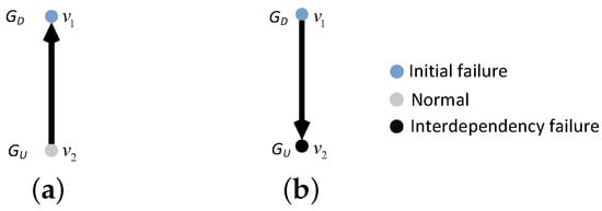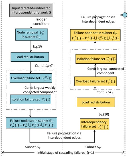 The framework of the initial stage of cascading failure mechanism in the directed–undirected interdependent network is shown in detail in Figure 11.