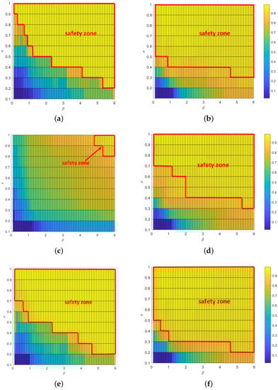 Figure 16 depicts the heatmaps of and in the parameter space under the single-node attack. We can easily observe a critical zone of . When and fall into this zone, cascading failures will not occur. We call this zone the “safety zone”. By comparing the sizeS of the safety zone in two single-node attack scenarios, we can easily notice that the safety zone in undirected subnet is much larger than that in the directed subnet. This result shows that attacks on the directed subnet cause more damage to the entire interdependent network system than attacks on the undirected subnet.