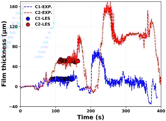 Validation of film evolution for the cases C1 and C2 with experiments [].