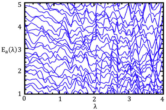 - Wilkinson, M. Statistics of multiple avoided crossings. J. Phys. A Math. Gen. 1989, 22, 2795. [Google Scholar] [CrossRef]