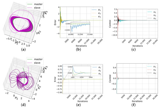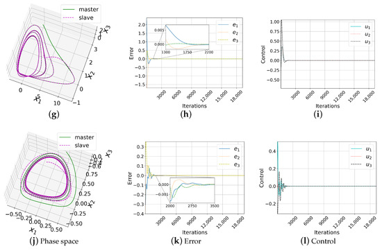 Synchronization of chaotic systems has received substantial attention theoretically and experimentally in recent years. Such attention is justified by the potential applications in secure communication [1,2,3], the control of chemical reactions with the aim of determining the favorable conditions for practical implementation [4], the stability of the chaotic wind power system in finite time [5], the synchronization of chaotic finance systems with known and unknown systems parameters [6,7], authentication from brain signals [8], chaotic attitude synchronization and anti-synchronization for master–slave satellites under unknown moments of inertia and disturbance torques [9], regulation of glucose–insulin concentrations from a chaotic regime (an illness) to a disorder-free equilibrium [10], and the relation between a meteorological phenomenon and influenza pandemics [11].