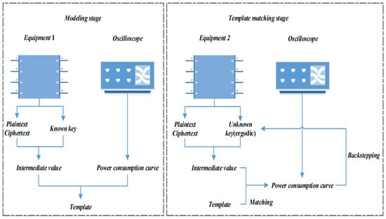Template analysis is generally divided into two processes: modeling phase and template matching phase, as shown in Figure 1. In the modeling phase, linear regression establishes a mathematical relationship model between the power consumption and each bit of the key based on the Hamming weight or Hamming distance leakage model, and then directly uses this model to match the actual power consumption in the template matching phase to guess the correct key.