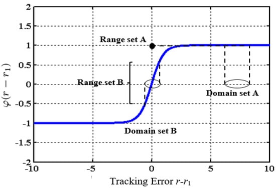 - The saturation feature of the function increases the robustness against noisy signals because for large errors, even with a wide range of noise, it is mapped to a small domain set of the function (see Figure 2, range and domain sets A);