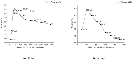 The application of SVM relies on training in corresponding data sets to build corresponding models. The rapid development of modern society leads to the explosive growth of all kinds of information and data []. The growth is not only in quantity but also in more and more diversified forms of data, such as text documents, pictures and gene sequences []. Faced with such massive data and complex forms of expression, it is impossible to carry out the practical application without filter and process. At the same time, the relationship and characteristics of massive data in modern society also have wider application space [,]. Therefore, data screening and dimension reduction of complex data are becoming more and more important, while the feature selection method is the key to achieving the above applications. Feature selection is a widely used data processing method, which selects the conforming features and excludes the non-conforming features according to the set evaluation criteria []. New data sets are obtained by the feature selection of the original data sets, which can improve the accuracy and efficiency of the algorithm in classification, regression, prediction and other tasks. It makes the models we generate more accurate and easier to understand.