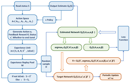 Using (14), one can find that the update iteration needs to achieve the approximation of the action-value function value (i.e., ), which means . Thus, the DQN network parameters can be updated by minimizing the mean square error loss function in the DQN algorithm.