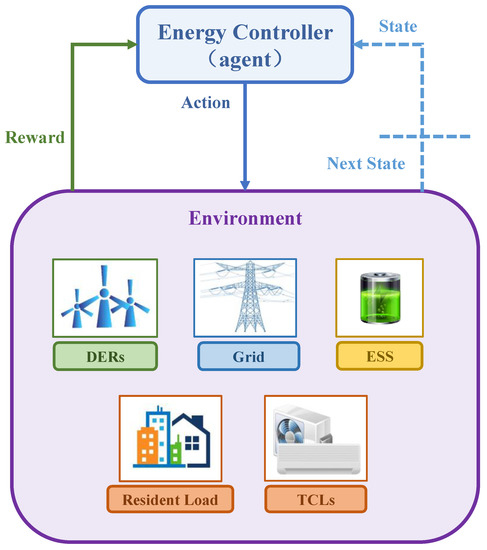 Reinforcement learning, also known as a promising information theory, is a machine learning method based on environmental feedback information [13,14]. Its decision theory is very suitable for issues containing complex environments and multiple variables. At present, some studies have proven the feasibility and effectiveness of the energy allocation strategy using reinforcement learning in the field of power system, such as load frequency control on the generation side and market competition strategy [15,16,17,18].