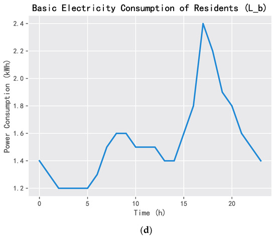 where represents the daily basic load of residents, , and follows the daily consumption pattern, which can be inferred from the average daily consumption curve of residential areas. is the shift load (SL) defined by (8), where represents the electricity price level at . Therefore, is positive when the price is high, i.e., then , and when the price is low, i.e., , then . The positive transfer load will be repaid after a certain period of time . The negative transfer load is the electricity provided in advance, so it will exist in the future. The loads to be compensated can be formulated as follows:
