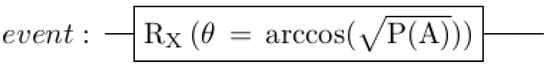 Thus, a quantum circuit for either the Clinton or the Gore question can be created with a single qubit and a single gate: to model one event with two outcomes (say A and not ), a qubit is assigned to that event, and a single-qubit rotation is applied to set the appropriate output probability. In Figure 4, an X-rotation is used, and the angle is given by the formula .