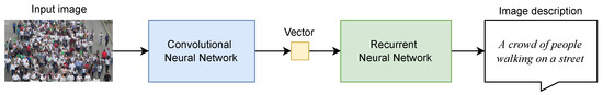 Using deep learning models to generate automatic descriptions of images includes the implementation of convolution neural networks (CNN) to perform the artificial vision part and the extraction of characteristics. Additionally, most of the models based on deep learning use recurrent neural networks (RNN) to perform natural language processing tasks. For this reason, automatic image captioning is currently linked to the set of deep learning techniques and architectures; therefore, this work will focus on these. In addition, other deep learning techniques are used to solve this problem, such as generative adversarial networks (GANs) [1,2,3,4,5]. GANs are an emerging method of semi-supervised and unsupervised learning; therefore, they are not included in this review.