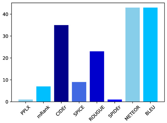 - Anderson, P.; Fernando, B.; Johnson, M.; Gould, S. SPICE: Semantic Propositional Image Caption Evaluation. In Proceedings of the Computer Vision–ECCV 2016, Amsterdam, The Netherlands, 11–14 October 2016; Leibe, B., Matas, J., Sebe, N., Welling, M., Eds.; Springer International Publishing: Cham, Switzerland, 2016; pp. 382–398. [Google Scholar]