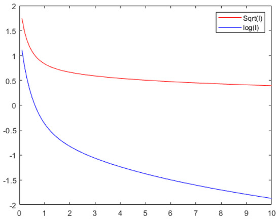 Since , we have . Then, , which means that is convex. Similarly, convexity of means that . Then we can obtain . By Lemma 1, is sqrt-convex in t. □