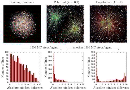 Still, what is actually meant by “polarization”? Some commentators focus on extremization of views, especially when the division becomes so strong that no consensus is possible. Another approach is to focus on the growing separation of modern, democratic societies into “tribes”. There are studies that confirm that political views are now a major factor in establishing personal relationships, even love. People refuse to have contact with those representing the other side. Studies confirm the subordination of opinions on specific subjects to the general partisan allegiance mentioned above. This increases the divisions between “us” and “them”. There are multiple “flavors” of polarization, among them ideological polarization, affective polarization [9] and factual belief polarization (for recent work, see, for example, [10,11,12]). There are other subcategories, focusing, for example, on psychological origins, such as moral polarization [13,14]. This plurality of definitions and meanings [15,16] sometimes leads to differences in research conclusions, as noted in [17]. Much of the research looks at the role of mass media and social networks in the growth of polarization [5,18,19,20,21]. Similarly, there are many psychological studies of the effects of exposure to differing views (and, conversely, to limiting contacts to like-minded “bubbles” and “echo chambers”) [22,23,24,25,26,27,28].