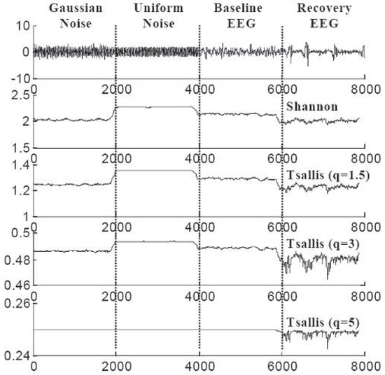 - Tong, S.; Zhu, Y.; Geocadin, R.G.; Hanley, D.; Thakor, N.V.; Bezerianos, A. Monitoring brain injury with Tsallis entropy. In Proceedings of the 23rd IEEE Engineering in Medicine and Biology Society Annual Conference, Instanbul, Turkey, 26–28 October 2001. [Google Scholar]