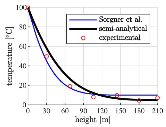 From the point of view of practical engineering, the analytical solution of linear heat conduction is frequently used [4,54]. Sorgner et al. [54] presented an engineering mechanics analysis of the subway station in the first 30 min of the aforementioned test, standing for a moderate fire scenario. By considering constant thermophysical properties of concrete, the superposition principle was applied to the resulting linear heat conduction problem, in order to quantify the temperature field. Therefore, the continuous temperature evolution of the heated surface of the top slab is discretized in step-wise fashion, referring to a temperature increment at time instant (). Solution of the temperature evolution, resulting from an individual temperature increment, is straightforward and summation of these elementary solutions gives access to the temperature field of the top slab as [54]