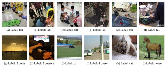 In the field of FPD, having access to a reliable dataset is crucial for improving the performance of detection modeling. However, collecting fallen person images in real-world scenarios presents significant difficulties, and most existing public datasets for FPD have been captured in simple experimental environments that did not accurately reflect the complexity of real-life scenarios. Therefore, it was necessary to construct an FPD dataset that was representative of real-world scenarios to meet research needs. This study used two methods to obtain the required images: (1) the conversion of videos containing fall scenes taken by surveillance systems into images; and (2) the use of web-crawler technology to obtain online images of human falls in real-life scenarios. The authors obtained a total of 4569 images through these two methods, and then they utilized an open-source tool, LabelImg [], to uniformly label the dataset images and generate the corresponding labels. The label set for the FPD was “fall”, with a total of 4576 objects labeled as such in the dataset. Finally, the authors divided the FPD dataset (FPDD) into training, testing, and validation sets using an 80/16/4 ratio.