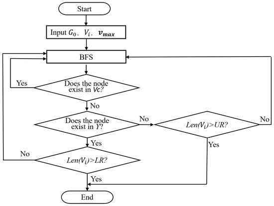 First of all, detect whether the node searched by BFS is in the set Vc; if yes, continue the search process; if no, determine whether it is in set Y; if yes, determine whether the number of nodes is greater than LR; if yes, the algorithm ends; if not, continue the BFS search. If the high betweenness node is not searched, determine whether the number of nodes in is greater than UR; if it is greater, the algorithm ends, and if it is not greater, continue the BFS search.