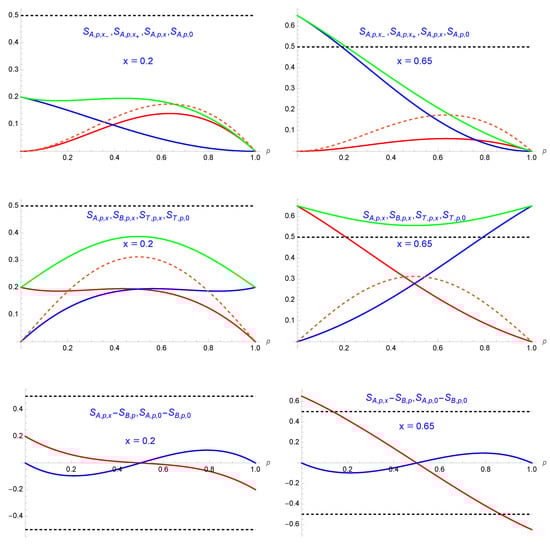 However, it is worth stressing that in the case of size four, keeping the tie 2A2B unchanged implies a weaker magnitude of individual shifts against turning the tie 2A2B into either 4A or 4B with equal probabilities . In the first case, at the attractor, the magnitude of shifts is versus for the second case. For groups of size three, the magnitude is . Table 1 shows the respective magnitudes as a function of x and for and .