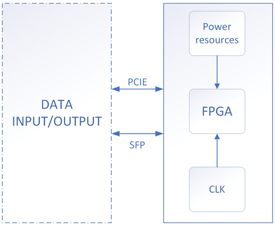 In the design, the power supply system supplies power to each module of the board. The FPGA clock is provided by an external chip. FPGA is responsible for algorithm implementation and data communication. Data input and output can be implemented through the PCIE bus or the SFP interface. According to the requirements of different I/O rates, the data to be hashed can be input to the FPGA through the PCIE bus or SFP interface. The FPGA hashes the data and outputs the calculation result.