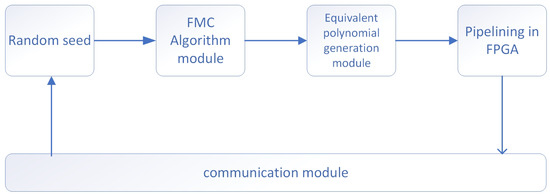 In the FPGA, we used the FMC algorithm to generate irreducible polynomials and hash the generated irreducible polynomials as the characteristic polynomials of LFSR. The program framework in FPGA is shown in Figure 6.