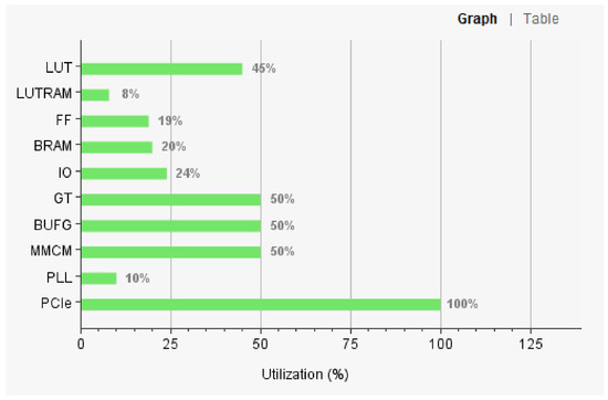 After completing the design of the FPGA program, we used Vivado software to evaluate the internal resource consumption of FPGA. The evaluation results are shown in Figure 7.