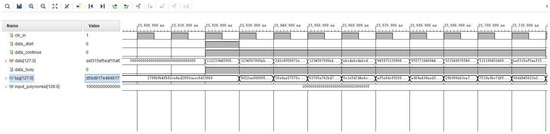 First, the FPGA logic was simulated and tested through the simulation capabilities of the Vivado software. The simulation results are shown in Figure 8.