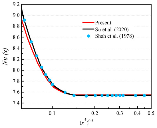 - Su, L.; Duan, Z.; He, B.; Ma, H.; Ning, X.; Ding, G.; Cao, Y. Heat transfer characteristics of thermally developing flow in rectangular microchannels with constant wall temperature. Int. J. Therm. Sci. 2020, 155, 106412. [Google Scholar] [CrossRef]