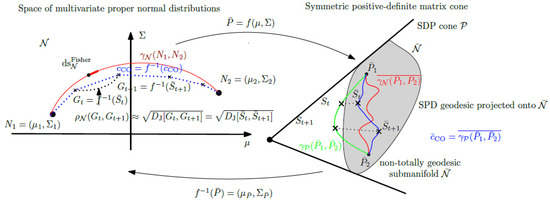 - Calvo, M.; Oller, J.M. An explicit solution of information geodesic equations for the multivariate normal model. Stat. Risk Model. 1991, 9, 119–138. [Google Scholar] [CrossRef]