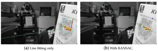 The core region detection based on the clustering results with (a) only line fitting and (b) additional RANSAC for outlier removal.