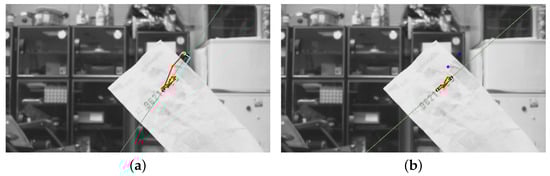 It should be noted that, depending on the feature extraction criteria, there could be zero to many prominent feature points for a reference image in the training data. The images without any prominent features can then be removed from the dataset. Only the prominent features in the reference images are used to match the features in the target images for region detection. To improve the matching efficiency, one-to-many feature correspondences between the target and reference images are also allowed. This strategy to increase the number of feature points is not applicable to most applications utilizing feature correspondence matching. The feasibility of one-to-many mapping is built upon the use of the certified features derived from the database images. Figure 3a,b show the feature extraction results using the conventional method and the proposed technique, respectively. It can be seen that our method is able to reject the undesired points while allowing the important features for region detection to remain intact.