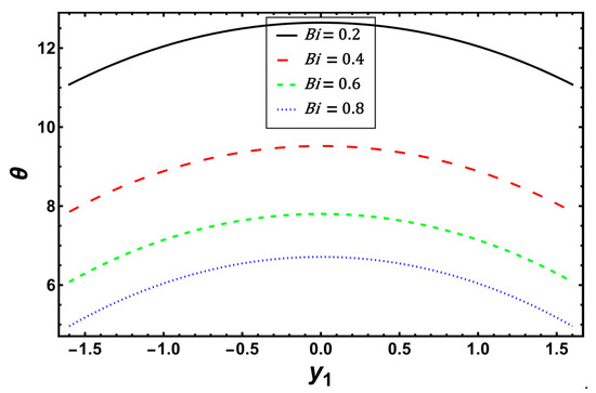 - A higher Biot number increases the magnitude of the temperature profile, indicating higher heat transfer in cases where the thermal resistance at the fluid-solid interface is small.