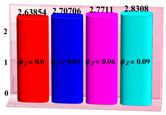 Here, ‘’ is the volume frictions of MWCNT, ‘’ is the nano-particles volume friction of zinc oxide, and ‘’ is the electric conductivity for base fluid. The expression for the Lorentz force is obtained by substituting Equation (5) into Equation (4), as shown in the study. This mathematical operation enables the relationship between the Lorentz force and other parameters to be analyzed and understood.