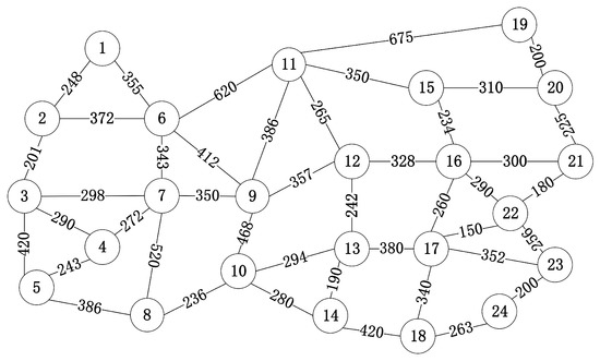 In the implementation process in detail, the time complexity of this algorithm mainly depends on the size of the network and the constraints. In the worst case, the time complexity of Rows 3–9 and Rows 10–36 in this algorithm is and , respectively. Therefore, the total time complexity of this HQNC algorithm is .