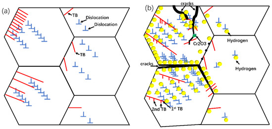 - Koyama, M.; Akiyama, E.; Tsuzaki, K.; Raabe, D. Hydrogen-assisted failure in a twinning-induced plasticity steel studied under in situ hydrogen charging by electron channeling contrast imaging. Acta Mater. 2013, 61, 4607–4618. [Google Scholar] [CrossRef]